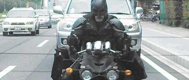 Unlike the desperately-in-need-of-a-some-deodorant superheroes you’ll often encounter in Times Square or on Hollywood Boulevard, Chibatman wears a costume that looks like it might have been lifted from one of Christopher Nolan’s Dark Knight films. And the thee-wheeled Batcycle he’s often seen riding seems to have come off the drawing board of Lucius Fox.