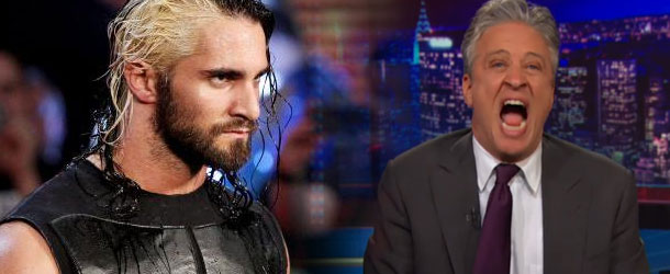 You thought Seth Rollins was just going to let Jon Stewart challenge him and let it go? No, of course not, and the two met face-to-face tonight on The Daily Show.